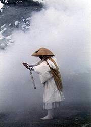 - 午前五時、寒水の滝で身を清めた荒行僧達により修霊法伝師を大導師として、国家安泰と皆様の無病息災の御祈願が、厳修されます。